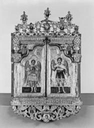 | Keywords: Greek - Miniature Iconostasis, with Scenes from the Life of Christ - Walters 371187.jpg The central part of this three-panel painting reproduces the wooden icon screen iconostasis that stands in front of the altar in Orthodox churches Small in size and easily portable the piece was used for personal devotions Its imitation of monumental church decoration reminded the viewers that since God is omnipresent prayer in private is the same as praying in church It was probably made on Corfu the resting place of St Spyridon who is portrayed on the right end of the central panel For several centuries this Greek island was a colony of Venice hence the influence of Italian baroque art seen in the ornamentation of the frame ca 1700 Early Modern tempera gold wood closed cm 68 2 42 1 11 8 ; open cm 68 2 74 11 8 ; each wing cm 68 2 18 5 accession number 37 1187 4682 George Robinson Harding London date of acquisition unknown by purchase Henry Walters city Baltimore Walters Art Museum Henry Walters Acquired by Henry Walters 1930 Holy Image Holy Space Icons and Frescoes from Greece The Walters Art Gallery Baltimore; Center for the Fine Arts Miami; Kimbell Art Museum Fort Worth; Fine Arts Museums of San Francisco San Francisco; The Cleveland Museum of Art Cleveland; The Detroit Institute of Arts Detroit; Virginia Museum of Fine Arts Richmond 1988-1990 Early Christian and Byzantine Art Baltimore Museum of Art Baltimore 1947 place of origin Corfu Greece Walters Art Museum license 3D Byzantine and Early Russian art in the Walters Art Museum Art from Greece Paintings in the Walters Art Museum Media contributed by the Walters Art Museum needs category review |