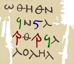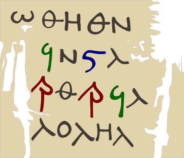 | Keywords: Greek numerals on 4th century papyrus.svg Digamma blue Koppa green and Sampi in the context of uncial Greek handwriting Drawn vectorized by me and colorized for greater clarity after a photograph of the papyrus presumed PD-Art published in Giovanna Menci 2010 Crittografia greca in Egitto un nuovo testo In Proceedings of the Twenty-Fifth International Congress of Papyrology Ann Arbor 2007 American Studies in Papyrology Ann Arbor pp 551 “564 http //quod lib umich edu/cgi/p/pod/dod-idx c icp;idno 7523866 0025 164 own photographic source see below Future Perfect at Sunrise 2010-09-19 Sampi letter Digamma letter Koppa letter |