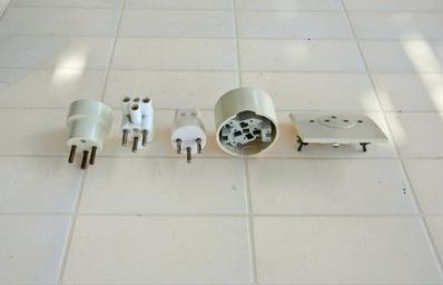 | Keywords: Greek old three pin plugs.JPG greek old three pin plugs called Tripoliki τρι ολικές the old greek standard practically abandoned by 1995 Left to right schuko adaptor 3-way adaptor plug on-wall mounting socket external in-wall mounting socket Seit 1995 in Griechenland in Neuinstallationen nicht mehr verwendete Steckverbinder Tripoliki τρι ολικές genannt Von links nach rechts Schukoadapter Dreiwegeadapter Stecker Steckdose für Aufputzmontage Steckdose für Unterputzmontage Own 2007-09-24 Korkon Mains plugs |
