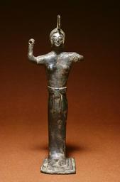 | Keywords: Greek - Palladion Athena - Walters 54780.jpg This type of statuette is known as the Palladion Athena after a famous statue of the goddess at Troy which according to tradition was stolen by the Greeks when they captured the city in the 13th century BC Images of the Palladion are characterized by flat simply modeled surfaces and a stiff forward-facing pose These figures are meant to depict a powerful early cult image instead of a lively active goddess late 6th century BC Archaic bronze cm 17 3 6 5 4 accession number 54 780 13649 Leon Gruel Paris date and mode of acquisition unknown Henry Walters city Baltimore Walters Art Museum Henry Walters Acquired by Henry Walters 1929 Men and Gods from Ancient Greece Palais des beaux-arts Brussels Belgium Brussels 1982 place of origin Sparta Greece Walters Art Museum license Ancient Greek sculptures in the Walters Art Museum Art from Greece Palladium mythology Media contributed by the Walters Art Museum needs category review |