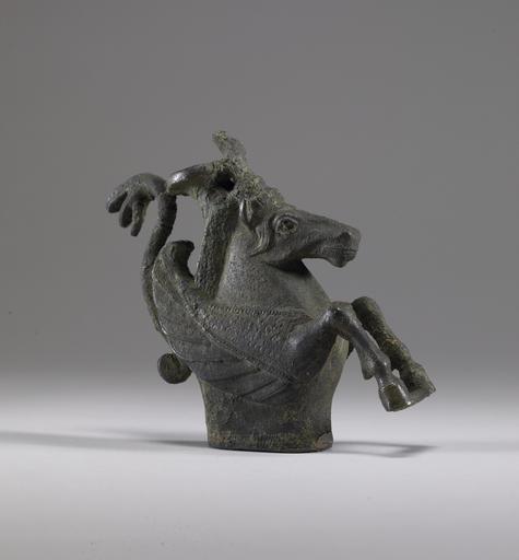 | Keywords: Greek - Pegasos Ornament from a Chariot - Walters 54882 - Three Quarter.jpg This ornament of the foreparts of the winged-horse Pegasos decorated a pole that would have connected a chariot to a horse Careful modeling and incised decoration create a detailed representation of this mythical creature that signified speed A coiled snake rears up behind Pegasos' head early 5th century BC Archaic bronze cm 10 3 3 11 accession number 54 882 32266 Henry Walters Baltimore date of acquisition unknown by purchase Walters Art Museum Henry Walters Acquired by Henry Walters Things With Wings Mythological Figures in Ancient Greek Art Ward Museum Salisbury 2009 Heroes Mortals and Myths in Ancient Greece The Walters Art Museum Baltimore; Frist Center for the Visual Arts Nashville; San Diego Museum Of Art San Diego; Alexander S Onassis Public Benefit Foundation USA New York 2009-2011 place of origin Greece Walters Art Museum license Ancient Greek art in the Walters Art Museum Art from Greece Media contributed by the Walters Art Museum needs category review Pegasus statues |
