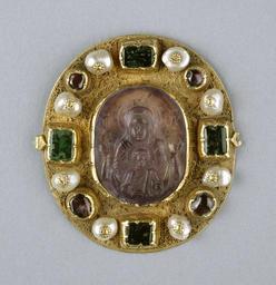 | Keywords: Greek - Reliquary Pendant with Virgin and Child - Walters 571511 (2) (3).jpg This exceptional pendant consists of a reliquary cross inside a hinged case with six small adjacent compartments for relics The impressive amethyst cameo depicting the Virgin and Child on the lid is surrounded by cabochon rubies and emeralds alternating with pearls The cross and the outer edge of the case are adorned with additional pearls and the back of the case is decorated in a similar fashion omitting the central cameo A ground of dense filigree covers the front and back of the case while the inside as well as the inscription and the Crucifixion scene on the cross are done in niello The text identifies the donor location and the time when the piece was crafted which is rare in Post-Byzantine jewelry the cross was dedicated by the Metropolitan Arsenios of Serres a town in northern Greece to the monastery of St John on the island of Chalke near Constantinople in the middle of the 16th century middle Other date century 16 Post-Byzantine gold amethyst emeralds rubies pearls semiprecious stones niello Lid cm 6 51 6 19 0 95 ; Back H with lope 3 3/8 x W 2 13/16 x D 5/8 in 8 57 x 7 14 x 1 59 cm ; Back H without lope cm 7 78 ; Cross H with lope 2 1/16 x W 1 1/4 x D 1/4 in 5 24 x 3 18 x 0 64 cm accession number 57 1511 19177 Metropolitan Arsenios Serres Greece Monastery of the Holy Trinity called Esopotron Chalke date and mode of acquisition unknown Henry Walters Baltimore date and mode of acquisition unknown Walters Art Museum Henry Walters Acquired by Henry Walters Translation 57 1511A on amethyst Mother of God / Jesus Christ; Translation 57 1511B on outer rim of inside face + Lord help Arsenius most holy and venerable metropolitan of Serres and locum tenens of Caesaria in Cappadocia; Translation 57 1511C on cross top Jesus Christ / The king of the Jews; Translation 57 1511C on face of the cross Thou hast redeemed us by Thy precious blood nailed to the cross ; Translation 57 1511C around sides of the cross a later inscription Presented by the most holy metropolitan of Serres Arsenius to the Monastery of the Holy Trinity called Esoptron on the island of Chalke Early Christian and Byzantine Art Baltimore Museum of Art Baltimore 1947 Exhibition of Gold The Cleveland Museum of Art Cleveland 1947-1948 New York World's Fair 1964 Protestant and Orthodox Pavilion Protestant and Orthodox Pavilion New York World's Fair New York 1964 Jewelry - Ancient to Modern The Walters Art Gallery Baltimore 1979-1980 The Taste of Maryland Art Collecting in Maryland 1800-1934 The Walters Art Gallery Baltimore 1984 Objects of Adornment Five Thousand Years of Jewelry from the Walters Art Gallery Baltimore Cooper-Hewitt National Design Museum New York; Chrysler Museum of Art Norfolk; Carnegie Museum of Art Pittsburgh; San Antonio Museum of Art San Antonio; Philbrook Museum of Art Tulsa; Honolulu Academy of Arts Honolulu; New Orleans Museum of Art New Orleans; Milwaukee Art Museum Milwaukee; Minneapolis Institute of Arts Minneapolis; Toledo Museum of Art Toledo; The John and Mable Ringling Museum of Art Sarasota 1984-1987 Jewelry from the Walters Art Museum and the Zucker Family Collection The Walters Art Gallery Baltimore 1987 Byzantium Faith and Power 1261-1557 The Metropolitan Museum of Art New York 2004 Bedazzled 5 000 Years of Jewelry from the Walters Art Museum Frist Center for the Visual Arts Nashville; The John and Mable Ringling Museum of Art Sarasota; The Walters Art Museum Baltimore 2006-2009 Treasures of Heaven The Cleveland Museum of Art Cleveland; The Walters Art Museum Baltimore; The British Museum London 2010-2011 place of origin Serres Greece <gallery> File Greek - Reliquary Pendant with Virgin and Child - Walters 571511 jpg File Greek - Reliquary Pendant with Virgin and Child - Walters 571511 2 jpg </gallery> Walters Art Museum license Byzantine and Early Russian art in the Walters Art Museum Jewellery in the Walters Art Museum Art from Greece Madonna and Child Crosses in jewellery |