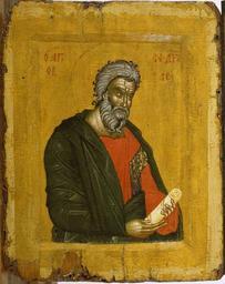 | Keywords: Greek - Saint Andrew - Walters 37559.jpg Saint Andrew holding a scroll looks intently to his left indicating that the panel once may have formed part of a group of icons with Christ at the center It may have been placed on the upper tier of an iconostasis the screen dividing the sanctuary from the nave in an Orthodox Church The color scheme of the icon is unusual in its use of extremely bright colors for the saint's robe and a mustard yellow - instead of gold - for the background century 14 Medieval tempera on wood with gilt cm 26 20 5 2 2 accession number 37 559 39354 Alexandre Polovtsoff Aleksandr Aleksandrovich Polovtsov Paris by purchase Henry Walters city Baltimore Walters Art Museum Henry Walters Acquired by Henry Walters 1930 Holy Image Holy Space Icons and Frescoes from Greece The Walters Art Gallery Baltimore; Center for the Fine Arts Miami; Kimbell Art Museum Fort Worth; Fine Arts Museums of San Francisco San Francisco; The Cleveland Museum of Art Cleveland; The Detroit Institute of Arts Detroit; Virginia Museum of Fine Arts Richmond 1988-1990 place of origin north Macedonia Greece Walters Art Museum license 2D Byzantine and Early Russian art in the Walters Art Museum Icons of Greece Paintings in the Walters Art Museum Media contributed by the Walters Art Museum needs category review Icons of St Andrew |