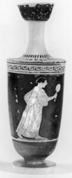 | Keywords: Greek - Shoulder Lekythos with Woman Holding a Mirror - Walters 48258 - Side A.jpg This red-figure shoulder lekythos depicts a woman walking to the right holding out a mirror in her right hand She wears a chiton mantle and earring ca 460 BC Classical terracotta at shoulder cm 16 8 5 4 h x diam ; at mouth cm 3 6 diam ; at foot cm 3 75 diam accession number 48 258 15808 Joseph Brummer New York date and mode of acquisition unknown Henry Walters city Baltimore Walters Art Museum Henry Walters Acquired by Henry Walters 1925 place of origin Attica Greece Walters Art Museum license Ancient Greek red-figure pottery in the Walters Art Museum Shoulder lekythoi Media contributed by the Walters Art Museum needs category review Women in ancient Greek pottery |