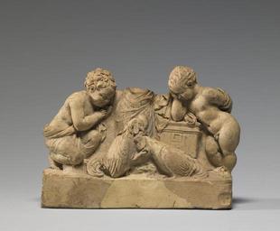 | Keywords: Greek - Three People Watching a Cock Fight - Walters 481714.jpg Made in ancient Amisos present-day Samsun along the Black Sea coast of Asia Minor the relief is a rare example of a multi-figured terracotta group and may well have been inspired by a work in another medium The child on the right mimics the pose of the famous statue of the Weary Heracles Archaeological Museum Naples Italy ca 330 100 BC Hellenistic terracotta cm 10 14 7 5 1 accession number 48 1714 3321 Found in Samsun 1912 Dikran Kelekian Paris and New York Henry Walters city Baltimore Walters Art Museum Henry Walters Acquired by Henry Walters 1913 From Alexander to Cleopatra Greek Art of the Hellenistic Age The Walters Art Gallery Baltimore 1988-1989 The Coroplast's Art Greek Terracottas of the Hellenistic World The College Art Gallery The College at New Paltz/SUNY New Paltz 1990-1991 place of origin Egypt Walters Art Museum license Ancient Greek sculptures in the Walters Art Museum Art from Greece Media contributed by the Walters Art Museum needs category review |