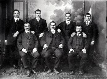 | Keywords: Greeks Georgia Batumi.JPG en Pontic Greeks of Georgia Kostas Konstantinidis from Sourmena seated from left Panagiotis Savvas and John standing from left Jordan Dimitris Anestis and Theodore in Batumi Georgia el Ελληνο όντοι Τα αιδιά του Κώστα Κωνσταντινίδη α ό τα Σούρμενα καθιστοί α ό αριστερά Παναγιώτης Σάββας και Γιάννης όρθιοι α ό αριστερά Ιορδάνης Δημήτρης Ανέστης και Θεόδωρος ka ბერძ ები საქართველ ში ბათუმი საქართველ early 20th century http //www omegatechnology gr/epm2/photos aspx page 14 Ε ιτρο ή Ποντιακών ελετών author Attribution metadata from licensed image PD-Old Pontic Greeks People of Trabzon Province Ethnic groups in Georgia Batumi |