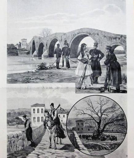 Keywords: Greek–Turkish border, Arta, 1897.jpg el Το γεφύρι της Άρτας ο λάτανος και η Ελληνική και Τουρκική φρουρά στον Άραχθο 1897 1897-09-30 ebay com author other versions PD-old-70-1923 Hellenic Army in the Greco-Turkish War 1897 Bridge of Arta