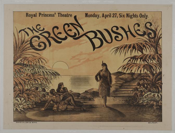 | Keywords: Green bushes - Weir Collection.jpg Monday April 27 1885 six nights only 'The Green Bushes' Printed by David Allen Sons Belfast Size cm 38 50 exhibition history Institution National Library of Scotland Poster object history object type PD-old-70-1923 place of creation Weir 4 6 74588094 Green bushes - Weir Collection Uploaded with GWToolset Green bushes - Weir Collection http //deriv nls uk/56YK98Q/7442/74426390 2 jpg Images uploaded as part of NLS-WMUK collaboration Weir Collection | ||||