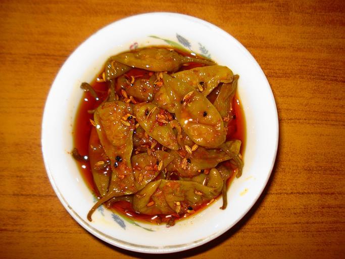 Keywords: Green Chilli Pickle.JPG en Hari Mirch Ka Achar own Miansari66 Condiments of Pakistan Cuisine of Karachi Cuisine of Punjab India made by User Miansari66 Cc-zero