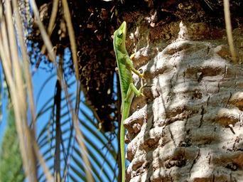 Keywords: green lizard palm tree nature