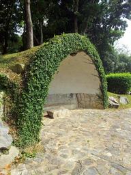 Keywords: green plant rainbow bow rest lake side pavement arch foliage tunnel overgrown landscape vegetation