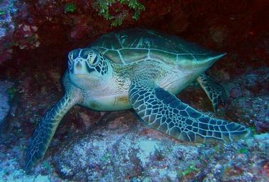 Keywords: green sea turtle sea ocean water underwater sea-life macro close-up