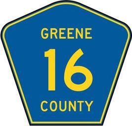 Keywords: Greene County 16.svg NYSDOT Greene County New York Self made based on NYSDOT sign drawing 2009-04-14 own assumed Overpush~commonswiki Diagrams of county route markers with county name 0016 16 number