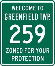 | Keywords: Greenfield Township Route 259, Fairfield County, Ohio.svg Greenfield Township Fairfield County Ohio as seen at http //www angelfire com/oh5/countysigns/fairfield_county html Based on File Greenfield Township Fairfield County Ohio route shield template svg 2013-06-30 16 18 04 own Minh Nguyen cc-zero Uploaded with UploadWizard Welcome signs in Ohio Diagrams of Ohio township route markers | ||||