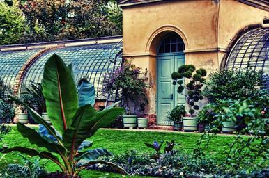 Keywords: greenhouse botanical garden plant building leaves green castle park glienecke garden