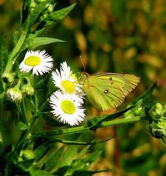 Keywords: Greenish-purple butterfly.JPG A brilliant green butterfly sucking nector in a creek Own 2007-06-13 Scrumshus Erigeron annuus Unidentified Colias