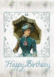 Keywords: greeting card birthday vintage victorian lady hat fancy greeting card celebration gift decorative day birth postcard congratulations lovely celebrate blue frame design romantic romance
