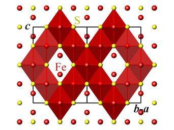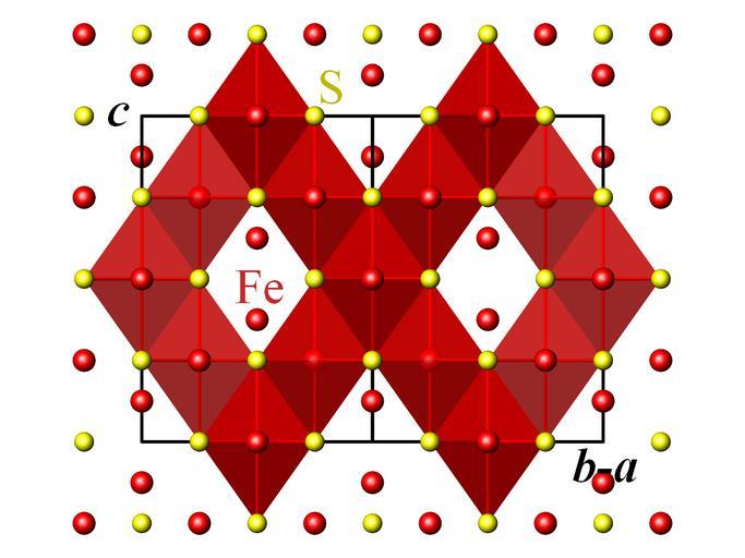 | Keywords: Greigite structure 110 FeS6 octahedra.png en Crystal structure of greigite Fe<sup>II</sup>Fe<sup>III</sup><sub>2</sub>S<sub>4</sub> space group Fd<span style text-decoration overline >3</span>m projected along the 110 direction with emphasis on the FeS<sub>6</sub> octahedra The iron atoms are represented in red and the sulfur atoms in yellow Image drawn with the program ATOMS version 5 1 Data source B J Skinner F S Grimaldi et al Greigite the thio-spinel of iron; a new mineral Am Mineral vol 49 no 5-6 1964 p 543-555 own Perditax 2012-01-07 Greigite Crystal structures in space group number 227 Cc-zero |