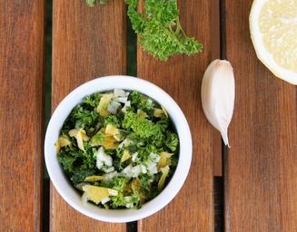| Keywords: Gremolata 02.jpg fr Gremolata un condiment lombard à base de persil ail et citron en Gremolata a mix of lemon garlic and parsley from Lombardy Italy 2016-05-28 19 33 00 own Popo le Chien other versions cc-zero Foodstuff pictures coverage by Wikimedia CH - 2016 Files by Popo le Chien Gremolata Parsley as food Garlic dishes Condiments |