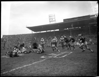 | Keywords: blackandwhite monochrome outdoor black and white Grey Cup football game VPL Accession Number: 43943 Date: November 26, 1960 Photographer/Studio: Province Newspaper Topic: Football Football players Sports Organization: Empire Stadium (Vancouver, B.C.) Location: British Columbia - Vancouver More information on our historical photograph collection: www.vpl.ca/historicalphotos Grey Cup football game VPL Accession Number: 43943 Date: November 26, 1960 Photographer/Studio: Province Newspaper Topic: Football Football players Sports Organization: Empire Stadium (Vancouver, B.C.) Location: British Columbia - Vancouver More information on our historical photograph collection: www.vpl.ca/historicalphotos |