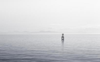Keywords: grey sky ocean water tower ripples
