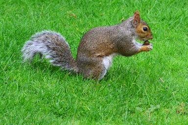 Keywords: grey squirrel rodent squirrel animal mammal eating cobnut grass close-up detail