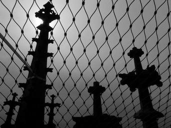 Keywords: grid towers graves cemetery crosses gloomy dark trueb