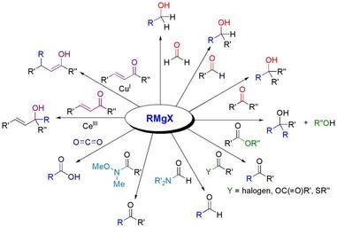 Keywords: Grignard with carbonyl.png Overview of the reaction of Grignard reagent with carbonyl compounds own <br /> Made with ChemDraw 2006-05-14 Calvero Grignard reactions