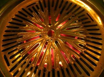 Keywords: hae woon dae haewoondae korean bbq food restaurant Korean BBQ in-table grill heating up with coals underneath. Hae Woon Dae Korean BBQ in-table grill heating up with coals underneath. Hae Woon Dae
