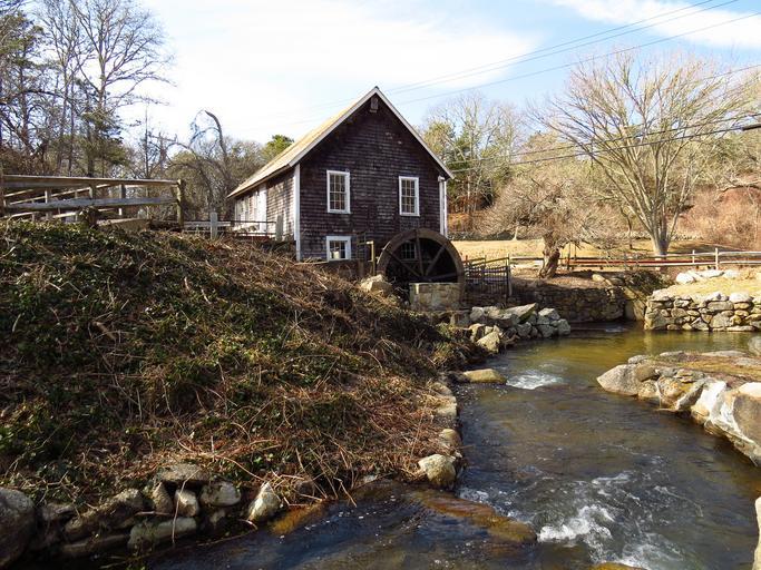 Keywords: grist mill water wheel countryside brewster cape cod barn rural