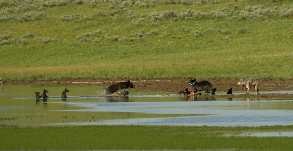 | Keywords: outdoor landscape field grassland Grizzly sow and three cubs with two wolves on carcass in Alum Creek; Jim Peaco; July 1, 2010; Catalog #18694d; Original #RD7Y0332 Grizzly sow and three cubs with two wolves on carcass in Alum Creek; Jim Peaco; July 1, 2010; Catalog #18694d; Original #RD7Y0332 |