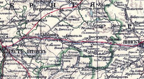 | Keywords: Grodno Kobrin uezd.jpg en Map of Kobryn district uezd Russia Now Belarus ru Ка та Коб инского уезда 1903 года Г одненская губе ния России http //www rodmurmana narod ru/maps/Grodno_Kobrin_uezd htm E Y Petri Y M Shokalsky 1903 PD-old Old Kobryn |