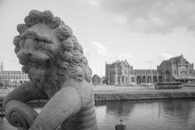 Keywords: groningen statue lion station black white old netherlands city travel europe holland monument tourism public