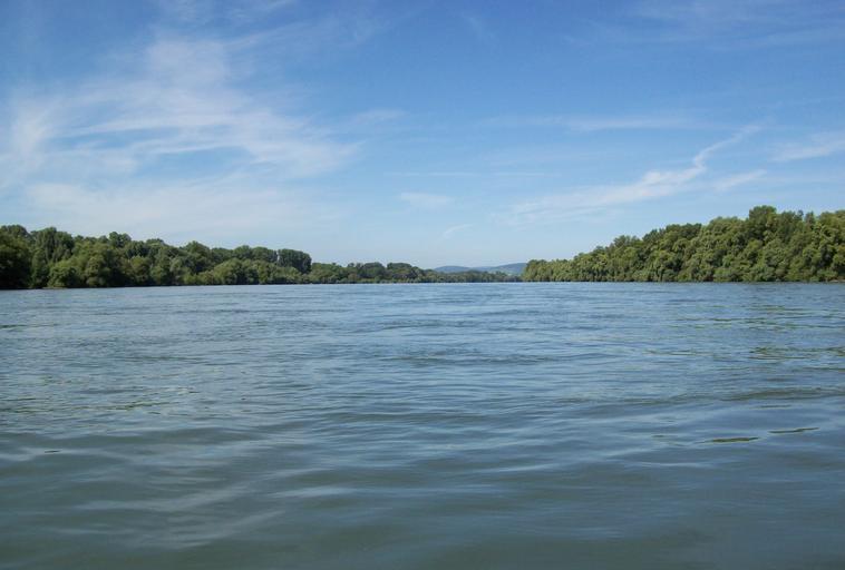 Keywords: Große Gieß.JPG de Große Gieß Linksrheinischer Arm des Rheines etwa bei Stromkilometer 514 Blick flußabwärts own Faltboot 2008-06-26 Rhine in Ingelheim am Rhein