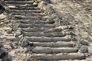 Keywords: ground tire tracks excavator tracks sand clay drought