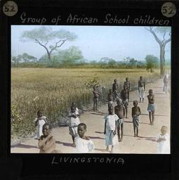 | Keywords: "Group of African School Children", Livingstonia, Malawi, ca.1910 (imp-cswc-GB-237-CSWC47-LS4-1-052).jpg en <br> Group of African School Children Livingstonia Malawi ca 1910 Photograph of a group of African school children possibly of the Ngoni people The children are standing spread out on a dirt road or track There is a field and trees to the left of the picture The Ngoni people are an ethnic group living in Malawi Mozambique Tanzania and Zambia in east-central Africa The Ngoni trace their origins to the Zulu people of kwaZulu-Natal in South Africa ; This belongs to a series of Church of Scotland Foreign Missions Committee lantern slides relating to Rev Donald Fraser 1870-1933 Rev Donald Fraser the Scottish missionary was born in Argyllshire Scotland the son of a Free Church minister In his youth Rev Fraser helped found the Student Volunteer Movement in Britain and the World Student Christian Federation before beginning missionary service in Malawi with the Free Church of Scotland He worked in Malawi from 1896 until he returned to Scotland in 1925 He was first posted to Ekwendeni and later Embangweni Rev Fraser worked closely with the Ngoni people Photographer Unknown Filename imp-cswc-GB-237-CSWC47-LS4-1-052 tif Coverage date circa 1910 Part of collection International Mission Photography Archive ca 1860-ca 1960 Type images Part of subcollection Photographs from the Centre for the Study of World Christianity University of Edinburgh U K ca 1900-ca 1940s Repository name Centre for the Study of World Christianity Archival file impaunpub_Volume7/1501 url Repository address The University of Edinburgh School of Divinity New College Mound Place Edinburgh EH1 2LX United Kingdom Geographic subject country Malawi Format aacr2 1 lantern slide 8 x 8 cm Geographic subject continent Africa Rights Contact the repository for details Part of series Donald Fraser of Loudon LS4/1 Repository email divinity-CSWC ed ac uk Subject lcsh Keyword Children Date created circa 1910 Publisher of the digital version University of Southern California Libraries Subject aat genre group portraits Format aat lantern slides Legacy record ID impa-m68550 Access conditions http //www ed ac uk/schools-departments/divinity/research/centres/world-christianity/collections-resources File GB 237 CSWC47/LS4/1/52 1910 author http //digitallibrary usc edu/cdm/ref/collection/p15799coll123/id/64622 PD-old-70-1923 Magic lantern images Images from USC Digital Library uploaded by Fæ International Mission Photography Archive ca 1860-ca 1960 |