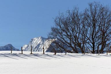 Keywords: grove of trees fence mountains high tauern winter snow pasture fence