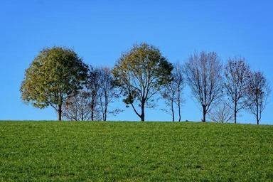 Keywords: grove of trees meadow sky nature trees field grass group mood horizon green autumn silent rest