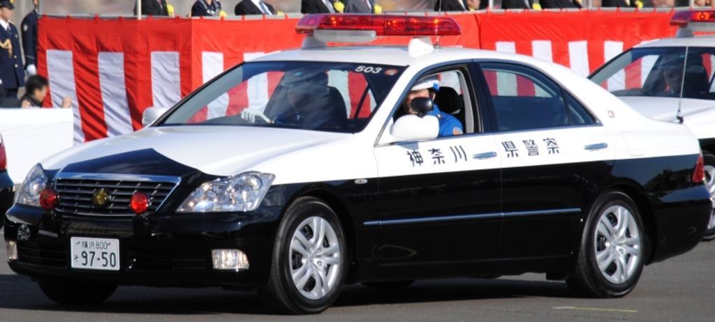 Keywords: Grs182crownpc.jpg Toyota Crown Police car own Photo by me 2010-01-06 Ypy31 Black and white police automobiles in Japan Toyota Crown in police service Toyota Crown S180 Kanagawa Prefectural Police Red and white stripe curtains in Japan
