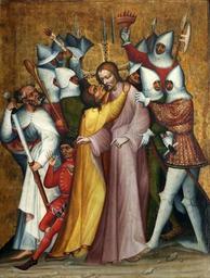 | Keywords: Grudziadz Polyptych 06.jpg Artwork Creator Master of the Trebon Altarpiece ca 1390 tempera gold panel cm 123 93 Institution National Museum Warsaw accession number Śr 22 object history credit line Władysław Łoś Jolanta Meder-Kois 1993 Poliptyk Grudziądzki a czeskie malarstwo gotyckie Uwagi wstępne Technologia artis The Yearbook of the Historical Art Technology Prague no 3 pp 70-76 http //www culture pl/image/image_gallery image_id 50945 t 1381091732896 www culture pl See below PD-old-100 DEFAULTSORT 1390 circa; Adoration of the Magi Grudziądz Polyptych Paintings of the capture of Jesus Christ Kiss of Judas close-up |