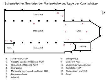 | Keywords: Grundriss marienkirche.png Grundriss der Marienkirche Dortmund mit der Lage der Kunstschätze Eigene Zeichnung September 2006 2006-09-19 own assumed Tbachner Plans of churches in North Rhine-Westphalia Plans of Marienkirche Dortmund DEFAULTSORT Dortmund |