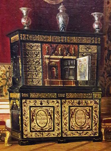 | Keywords: Gryglewski Queen's Bedroom (detail).jpg Artwork Q23691286 Creator Aleksander Gryglewski 1874 oil canvas Institution National Museum Warsaw 1 accession number 181594 object history credit line Fragment with Cabinet of John III Sobieski lost during World War II http //cyfrowe mnw art pl/dmuseion/docmetadata id 15875 show_nav true full_screen true cyfrowe mnw art pl own PD-old-100 DEFAULTSORT 1874; Queen's Bedroom Paintings by Aleksander Gryglewski in the National Museum in Warsaw Queen's Bedroom in the Wilanów Palace Furniture lost in Poland during World War II Missing items from the Wilanów Palace John III Sobieski Collection Cabinets Wooden furniture Incrustation Tortoiseshell Mother of pearl inlay Ebony |
