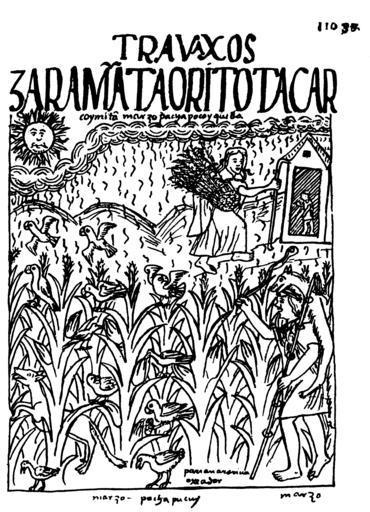 Keywords: Guamán Poma 1615 1138 marzo.png en p 1138 March ZARAMANTA ORITOTA CARcoy mitan Time of chasing parrots from the maize fields see original and comments on http //www kb dk/permalink/2006/poma/1148/en/text/ open id2978806 Guaman Poma Website fr Mars temps d'épouvanter les perroquets hors du maïs es Marzo tiempo de expulsar los papagayos del maíz Guamán Poma de Ayala Felipe 1615 Nueva corónica y buen gobierno Peruvian manuscript Felipe Guamán Poma de Ayala 1615 PD-old-100-1923 Maize illustrations Felipe Guamán Poma de Ayala |