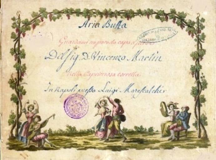 | Keywords: Guardami un poco da capo a piedi, aria from La Capricciosa Coretta by Martin y Soler.jpg La capricciosa corretta probably produced at the time of the opera's performance in Naples in 1798 The original is held in the Biblioteca del Conservatorio di musica S Pietro a Majella in Naples 1798 http //www internetculturale it/opencms/opencms/it/viewItemMag jsp case id oai 3Awww internetculturale sbn it 2FTeca 3A20 3ANT0000 3AIT\\ICCU\\MSM\\0093784 Composer Vicente MartÃn y Soler 1754 “1806 ; Copyist and publisher Luigi Marescalchi 1745 “1812 ; Cover artist Unknown other versions PD-old-100 Uploaded with UploadWizard Sheet music covers |