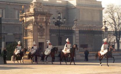 | Keywords: Guardia Real a caballo (2001).jpg Guardias reales a caballo en Madrid own 2001 Jean Körp public domaine Exterior of the Royal Palace of Madrid Plaza de la Armería Madrid Cavalry of Spain People of Spain Spanish Royal Guard 2001 in Madrid Mounted guards |