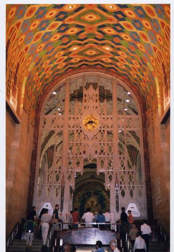 | Keywords: Guardianinterior.jpg Guardian Building entrance lobby ” with two-story Art Deco entrance screen of Monel metal and walls and vaulted ceiling decorated with mosaics and Pewabic Pottery and Rookwood Pottery glazed tiles The Ezra Winter mural Michigan can be seen in the middle through the metal grill The 1929 Art Deco style Union Trust Building ”Guardian Building is located at 500 Griswold Street Downtown Detroit Michigan Designed by Wirt C Rowland of Smith Hinchman and Grylls architects and built by Gorham Co of Providence Rhode Island 1928-1929 The building's interior which gave rise to the building's nickname Cathedral of Finance has undergone a full restoration 2006 A contributing property in the Detroit Financial Historic District and on the National Register of Historic Places Transferred from http //en wikipedia org en wikipedia; transferred to Commons by User Fitzed using http //tools wikimedia de/~magnus/commonshelper php CommonsHelper Two-story entrance screen made of en Monel metal Fitzed <span class signature-talk >talk</span> 14 25 1 April 2010 UTC The building's interior which gave rise to the building's nickname Cathedral of Finance has recently undergone a full restoration Ezra Winter's mural Michigan can be seen in the middle through the metal grill Carptrash 16 57 13 April 2006 UTC GFDL-with-disclaimers relicense original upload log page en wikipedia Guardianinterior jpg 2005-03-18 06 37 Funnyhat 1164Ă—1680Ă— 316455 bytes <nowiki>Guardian Interior</nowiki> Guardian Building Building interiors in Michigan Art Deco architectural elements Grilles architecture in the United States Monel Lobbies in the United States Files by User Carptrash from en wikipedia |