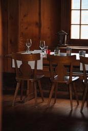 Keywords: guest room restaurant rustic gedeckter table wine glasses closed habsburg switzerland