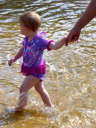 Keywords: guidance child girl toddler infant guide teamwork assistance direction lead holding hand human care childhood walk stroll beach water
