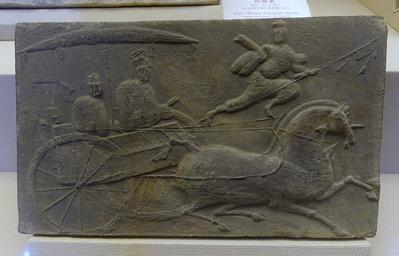 | Keywords: Guiding carriage, China, unearthed at Taiping, Pengzhou City, Eastern Han dynasty, 25-220 AD, tomb tile - Sichuan Provincial Museum - Chengdu, China - DSC04818.jpg en Exhibit in the Sichuan Provincial Museum 四 博物院 also known as the Sichuan Museum 251 Huanhua S Road Chengdu Sichuan China Photography was permitted in the museum without restriction This work is old enough so that it is in the public domain 2015-09-24 03 52 49 own Daderot other versions PD-old-100 cc-zero Tomb bricks of the Eastern Han Dynasty in the Sichuan Provincial Museum Carriages of the Eastern Han Dynasty |