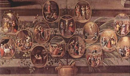 | Keywords: Guido Reni 056.jpg Artwork de Rosenkranzmadonna Detail Medaillons mit Darstellung zu Szenen aus dem Leben Jesu und der Passion oil canvas Bologna Basilica di San Luca The Yorck Project 10 000 Meisterwerke der Malerei DVD-ROM 2002 ISBN 3936122202 Distributed by DIRECTMEDIA Publishing GmbH ca 1596-1598 Creator Guido Reni http //mail wikipedia org/pipermail/wikide-l/2005-April/012195 html Other versions PD-old-100 PD-Art-YorckProject See also <gallery>File Guido Reni 057 jpg</gallery> Religious paintings by Guido Reni Rosenkranzmadonna Baroque paintings of the Passion of Jesus Christ Life and teachings of Jesus Christ 1590s paintings in Italy 16th-century oil on canvas paintings in Italy Plants in art 16th-century religious paintings in Italy Baroque paintings in Bologna 1590s paintings from Italy Details of 16th-century paintings 1590s religious paintings |